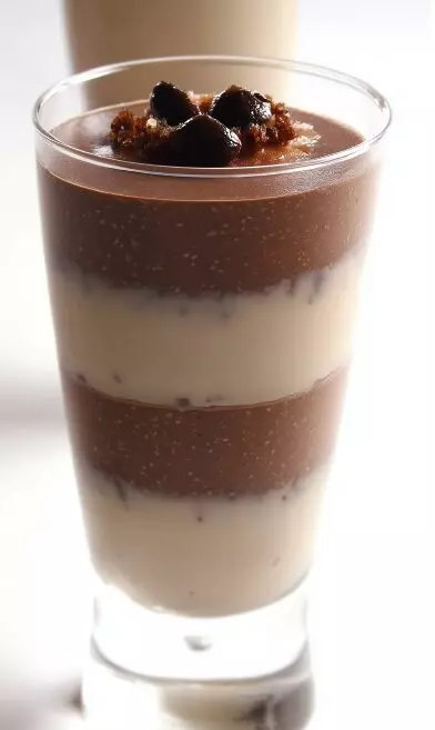 - Dans des verrines ou des verres, alternez des couches de crème au café et de biscuits émiettés.
